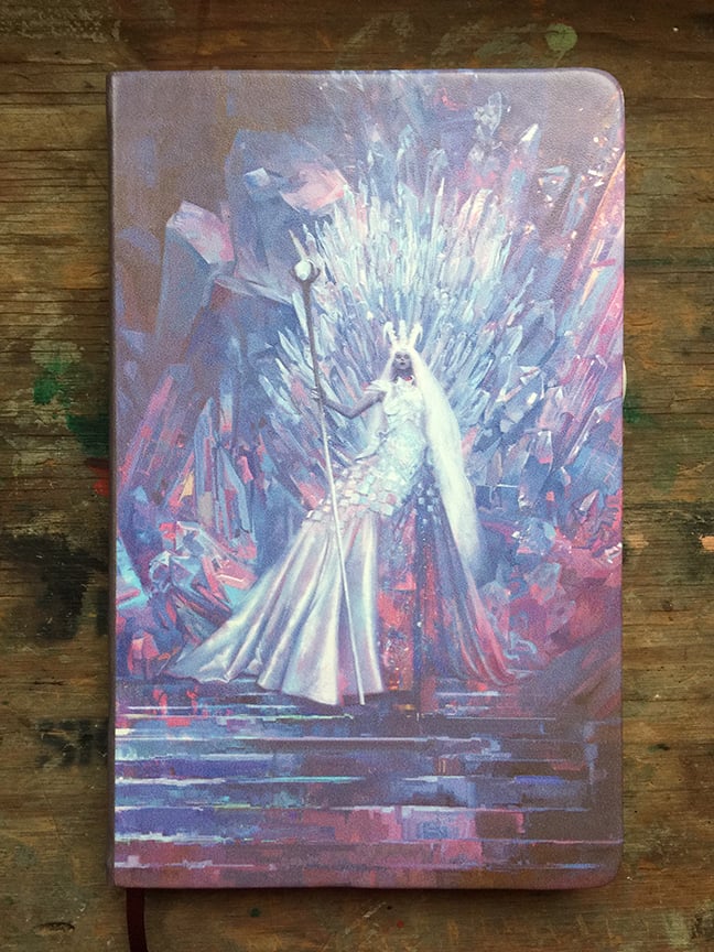 This book is perfect for drawing and sketching with dry media, and a soft dot-grid pattern on the pages makes it ideal for journaling or mapmaking as well. The cover is faux leather and printed in full color with the "Bright Queen" illustration, inspired by Critical Role.