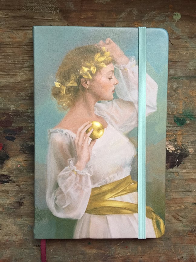 This sketchbook features my full-color illustration, The Frog Prince, part of my Fairy Tales series. The cover is soft faux leather and the pages are pale ivory. At 100 gsm paper weight, this book is perfect for journaling and drawing in dry media.