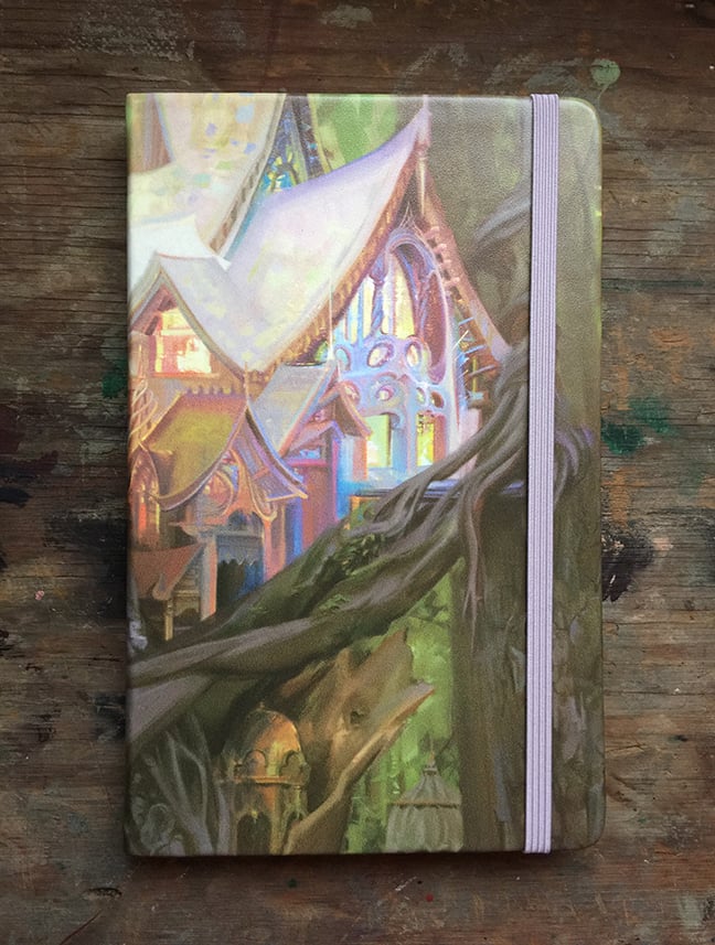 This sketchbook features my full-color illustration, The Isalspire, an expansive and vibrant fantasy city. The cover is soft faux leather and the pages are pale ivory. At 100 gsm paper weight, this book is perfect for journaling and drawing in dry media.